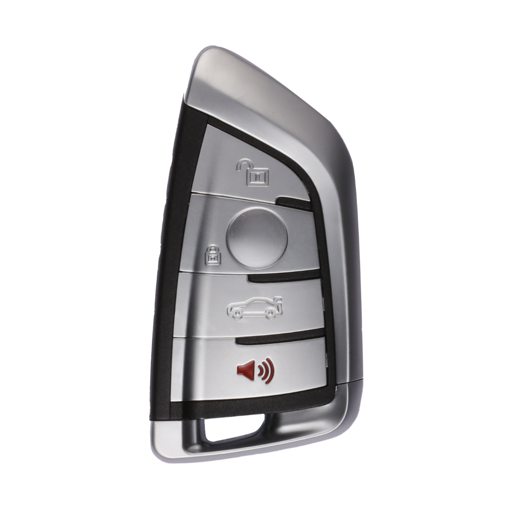 Autel programmerbar 4-knappars BMW-style IKEY. Knapparna för lås, upplåsning, bagageutrymme och panik. Använd Autel MaxiIM för att programmera IKEY. Inkluderar räddningsblad av BMW-typ. Uppfyller eller överträffar bransch- och regleringsstandarder. Kompatibel med fordonssystem som använder 315/415 MHz. Kan överföra frekvenser med extremt lång räckvidd (40 meter/130 fot). Batteri (CR2032) och nödklinga ingår inte.